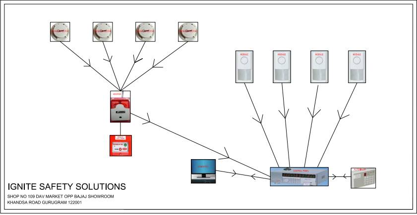 Radio emitter reads the separate zones of each detector lying at a distance of 85 feet and push the signal which is read by panel. Manual call point can activate radio emitter. So as soon as emitter receives signal from the manual call point siren of 85 db starts and also emitter sends signal to the panel.